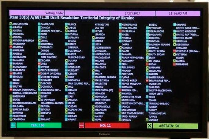 BMT-nin Baş Assambleyası Krımın Rusiyaya birləşdirilməsinin qanunsuz olması və Ukraynanın ərazi bütövlüyünü dəstəkləyən qətnamə qəbul edib.