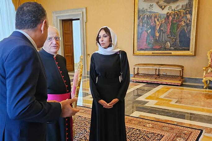 Roma Papası XIV Leo Vatikan dövləti ilə Azərbaycan Respublikası arasında ikitərəfli əməkdaşlığın uzun tarixə malik olduğunu diqqətə çatdırıb. Roma Papası bir neçə il əvvəl Mehriban xanımın irəli sürdüyü təşəbbüslər sayəsində münasibətlərin xeyli inkişaf etdiyini deyərək, Birinci vitse-prezidentə təşəkkürünü bildirib. XIV Leo bu əməkdaşlığın dinlərarası və sivilizasiyalararası dialoqa çox böyük təkan verdiyini, Azərbaycanın da bu baxımdan dünya miqyasında ilk sıralarda yer aldığını qeyd edib.