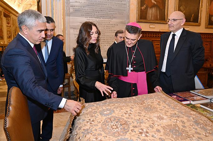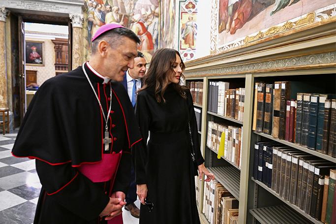 Sonda Azərbaycanın Birinci vitse-prezidenti Mehriban Əliyeva Apostol Kitabxanasına Azərbaycanın tarixi, təbiəti və mədəni irsinə həsr olunmuş bir sıra kitab və nəşrlər hədiyyə edib.