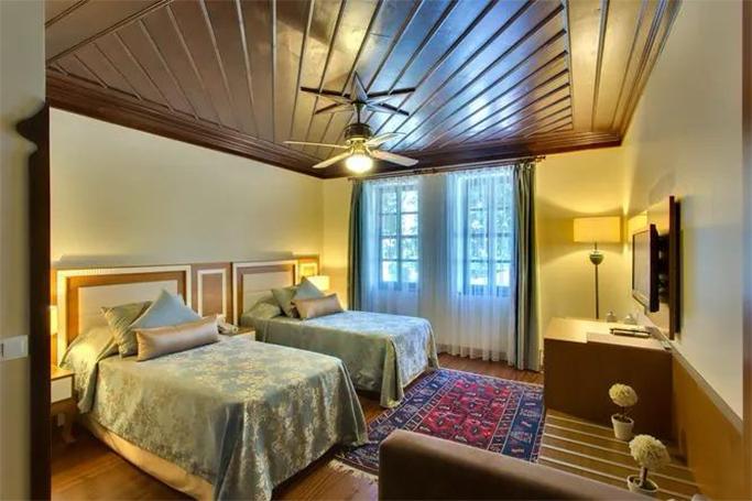 Zərif otaqlar Osmanlı üslubunda bəzədilib və müasir rahatlıqlarla təchiz olunub. Otelin baş aşpazı həm beynəlxalq mətbəxin sevilən yeməklərini, həm də ənənəvi türk təamlarını hazırlayır. Səhər yeməyi isə otelin öz portağal bağında verilir. Qonaqlar üçün böyük açıq hovuz da mövcuddur — burada günəşin altında dincəlmək və vaxt keçirmək üçün hər cür şərait yaradılıb.