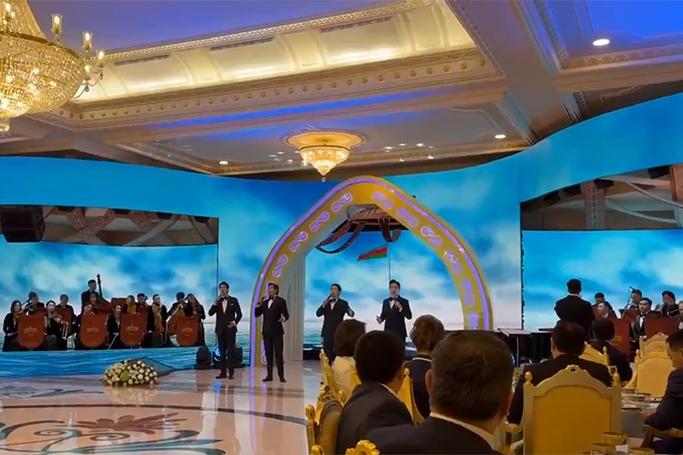 Qazaxıstan musiqiçiləri Azərbaycan Prezidenti İlham Əliyevin şərəfinə dahi ifaçımız Müslim Maqomayevin “Mavi əbədiyyət” (“Синяя вечность”) mahnısını ifa edib. Bu barədə Azərbaycan Respublikası Prezidentinin köməkçisi – Azərbaycan Respublikası Prezidenti Administrasiyasının Xarici siyasət məsələləri şöbəsinin müdiri Hikmət Hacıyevin “X” sosial şəbəkəsindəki hesabında məlumat yayılıb.