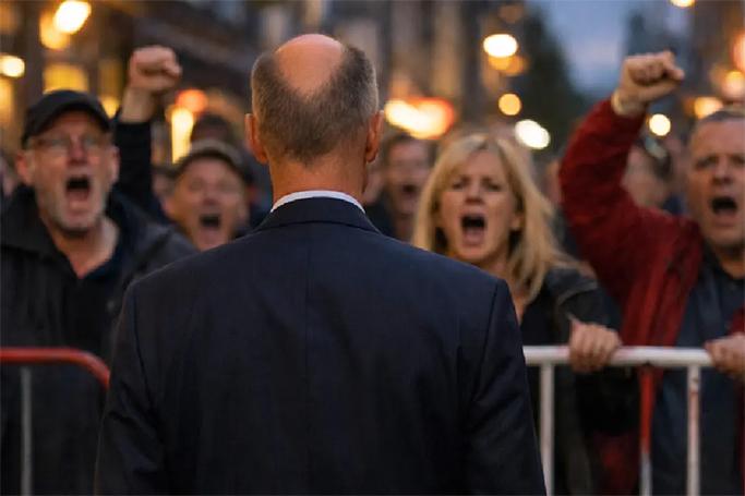 Mühafizə altında hərəkət edən Merz və komandasına vətəndaşlar sərt reaksiya göstərib. Etirazçılar “Rədd ol, yalançı kansler, utanın, axmaq, səni burada istəmirik, evinə get, ikiüzlü” kimi ifadələrlə Merzə etiraz ediblər.