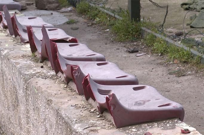 Sınıq-salxaq oturacaqlar... Yarasız hala düşən ot örtüyü... İstifadəyə yararsız stadion...
